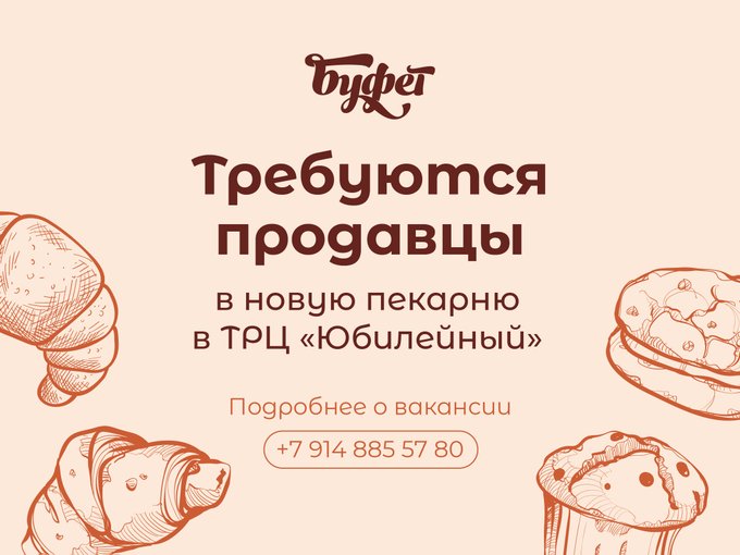 🥐Ищешь работу в Юбилейном?Мы ищем тебя!